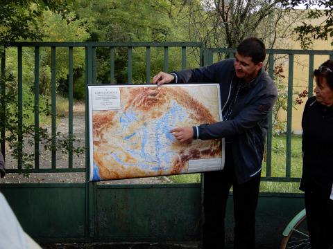 A fürdőlátogatás után második állomásunk az Élővíz-csatorna egyik hídjánál volt, ahol Dr. Gulyás Péter geográfus várt bennünket, akitől Békéscsaba földrajzilag determinált múltjáról, valamint a Körösök és az élővíz csatorna történetéről hallunk előadást. Megtudtuk, hogy mi késztette elődeinket a Fehér-Körös szabályozására, az Élővíz-csatorna kiásására, milyen nehézségekkel kellett megküzdeni, és milyen céllal hasznosították az így létrejött mesterséges folyót. Hallottunk a Maros ősi folyómedrének földtörténeti vándorlásáról, mely során településünk helyén is járva, hordalékkúpokat hozott létre.