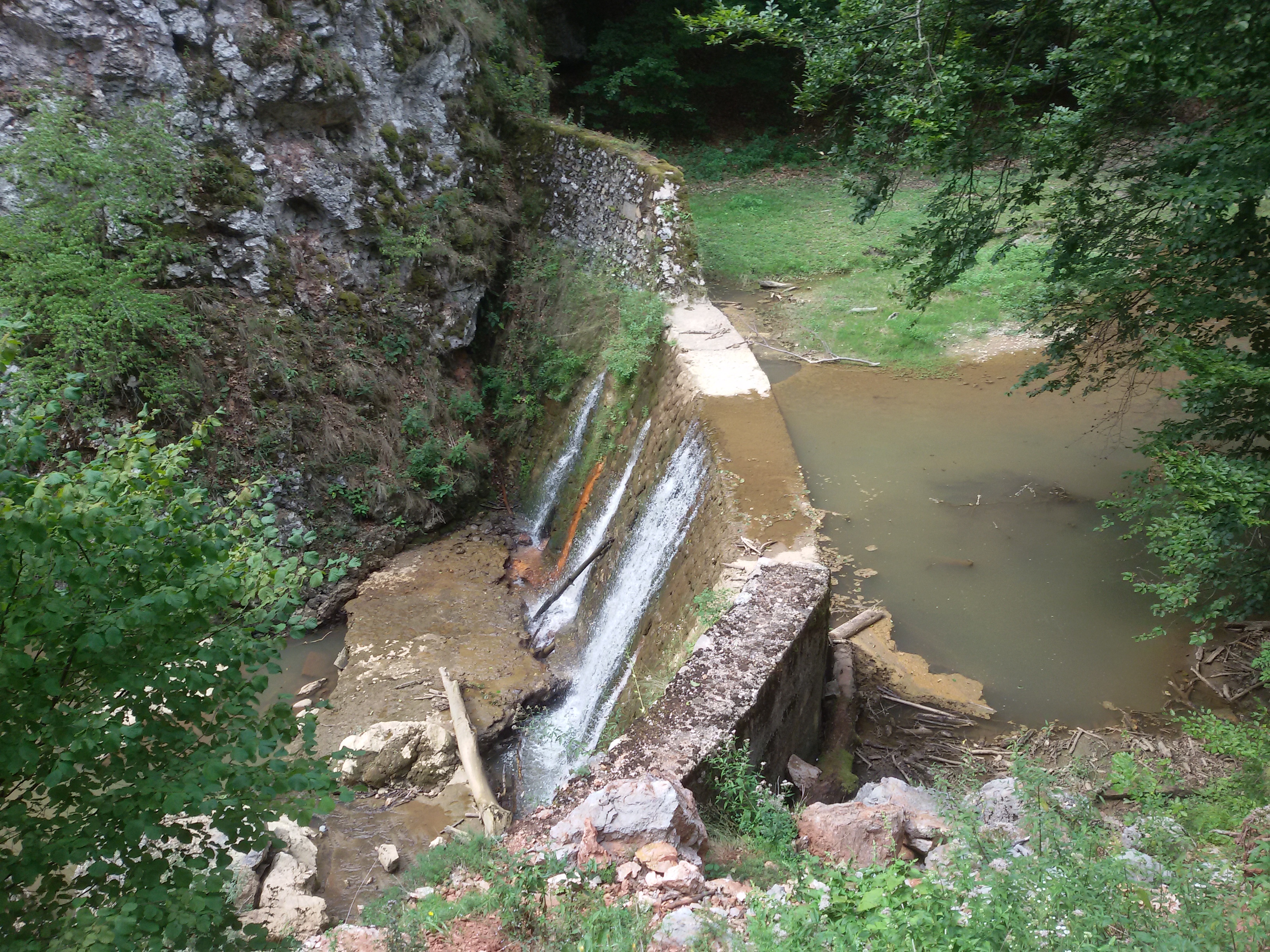A szoros Lazuri településhez közeledve egyre szélesedik, majd egy ponton kőépítmény állja a patak útját egy kisebb vízesést létrehozva.