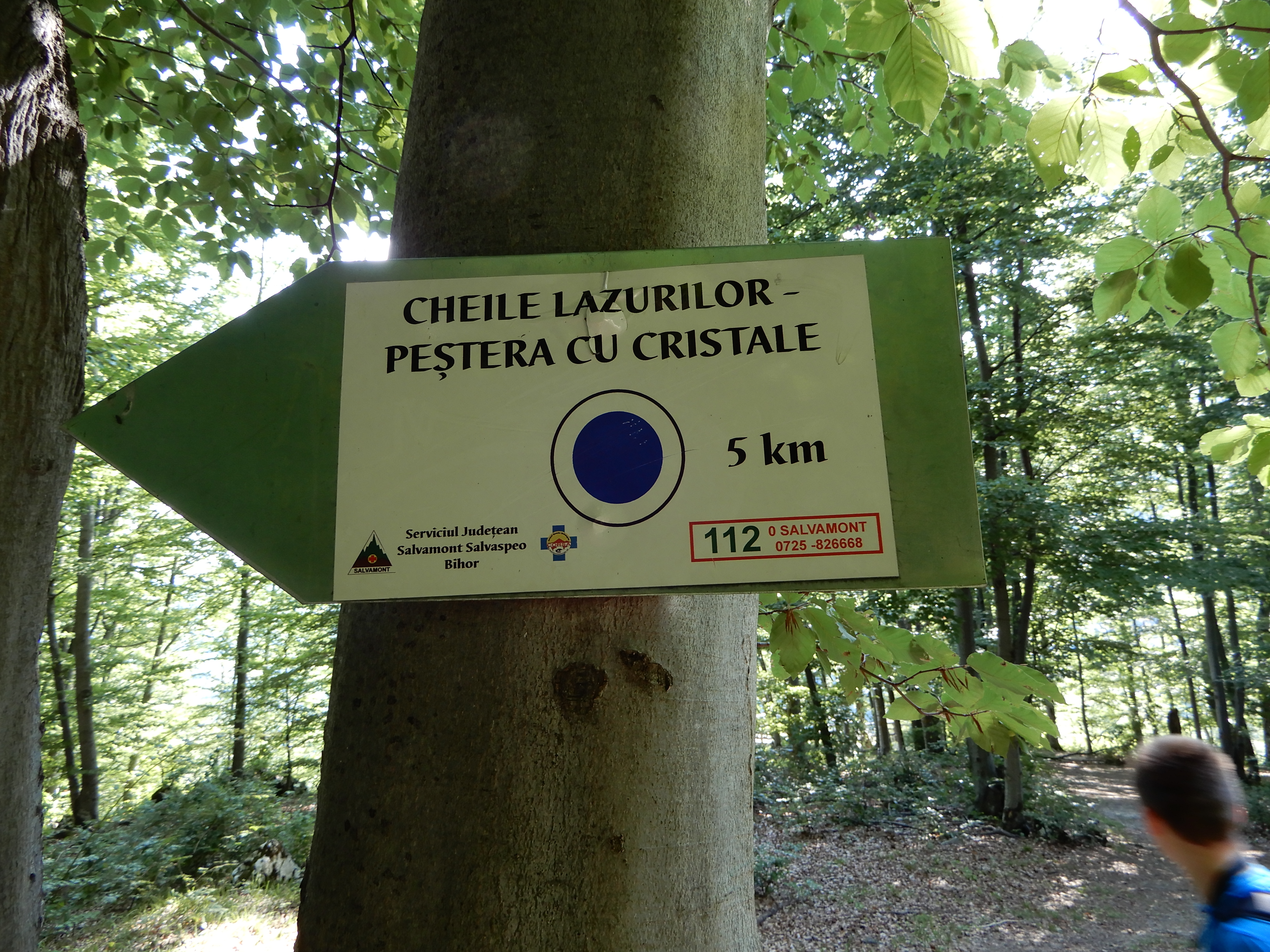 Túránkat a Farcu, vagy Rosia kristálybarlang parkolójából indítottuk, ahonnan egy kék körrel jelzet túraútvonal indul, mely valójában egy pihenőhelyekkel kiépített, információs táblákkal szegélyezett tanösvény, mely megismerteti a kíváncsi látogatókkal a Királyerdő és a karsztvidék természeti értékeit. A parkolótól egy fekete-fehér kutyakölyök csatlakozott hozzánk, gondoltuk ideiglenes kísérőként. Alulértékeltük a képességeit, mert mint majd látjuk, végig kitartott túracsapatunk mellett.